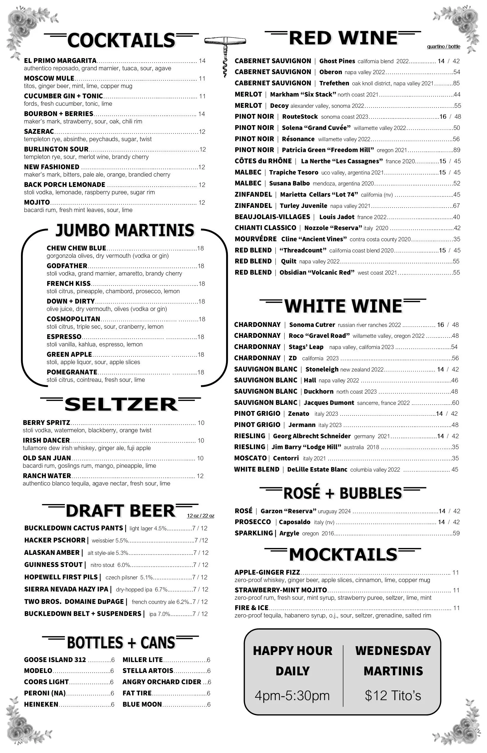Our menu changes at the beginning of the Spring and Fall seasons.